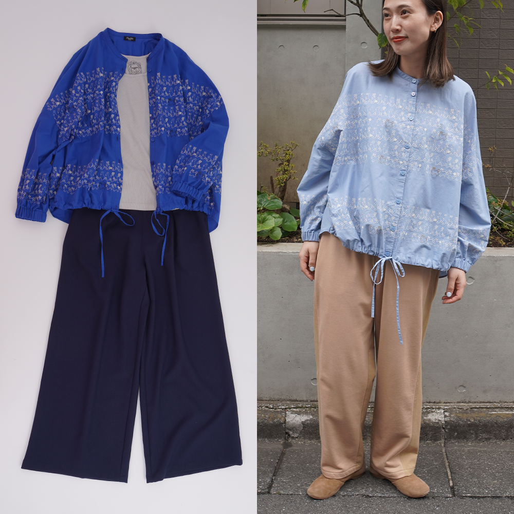 程よいシアー感の上質なコットンボイルが気持ちいい。開けたり閉じたり裾を絞ったり・・着こなしに変化をつけられる優秀なアイテムです。