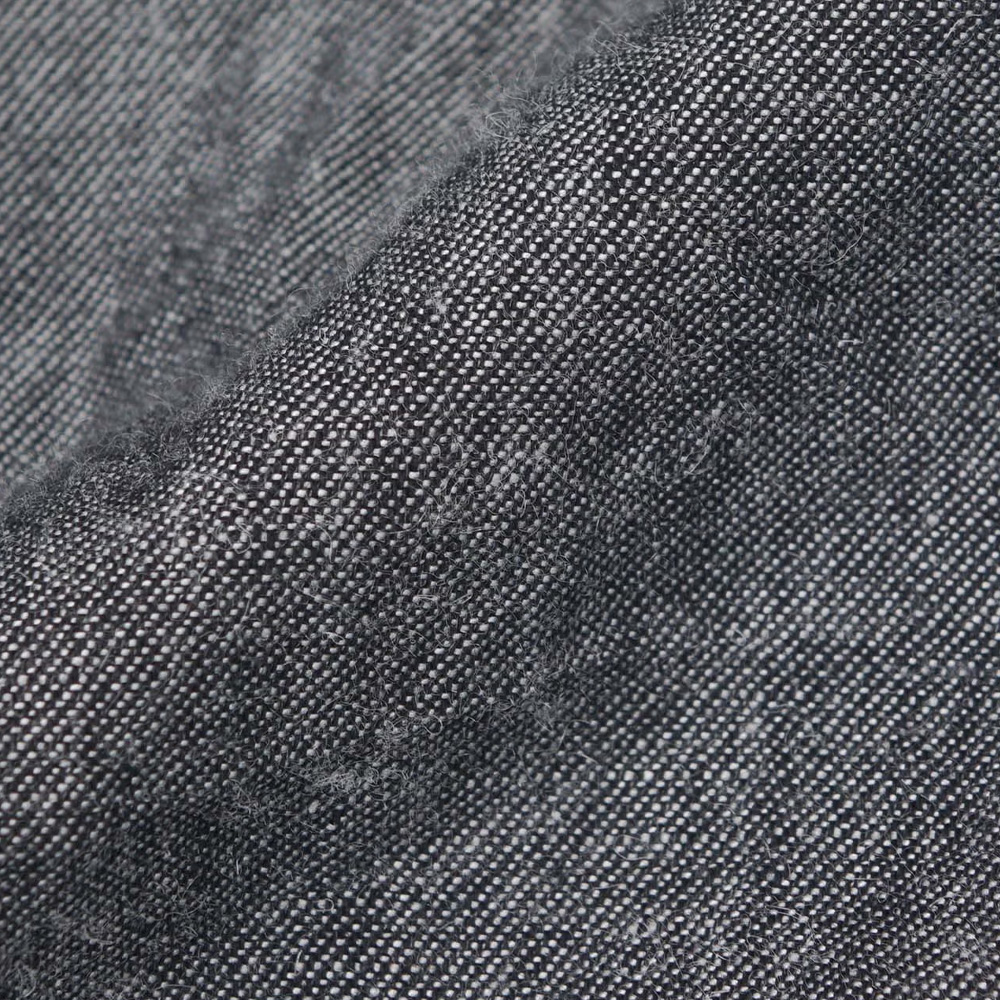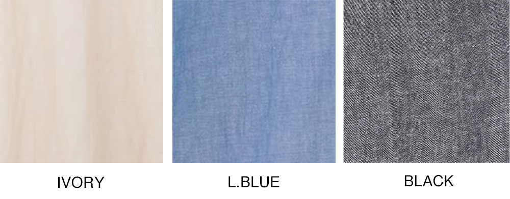 コットンと麻をブレンドしたシャンブレー生地は、やわらかな肌触りと通気性の良さが特徴です。