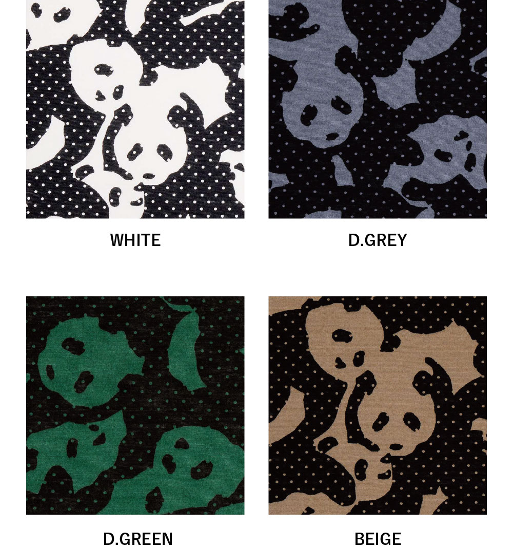 シルエットで描いたパンダに、細やかなピンドットをミックス。 可愛らしさの中にほんのりと大人っぽさが漂う、「ドットパンダ」シリーズ。