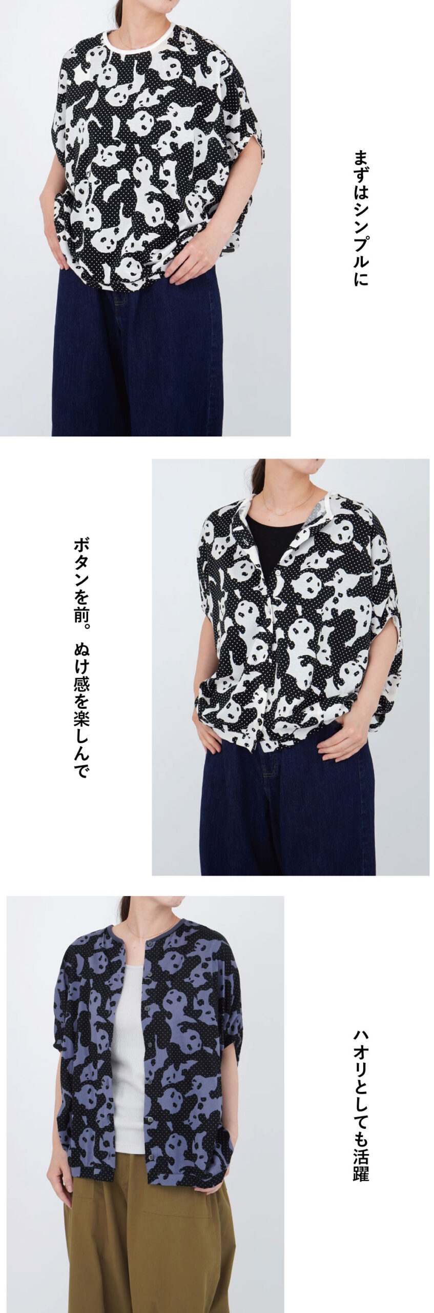 可愛らしさと落ち着きのバランスがちょうどいい「ドットパンダ」。 優しい肌触りのカットソーはこれからの夏のお出かけにぴったりです。 是非チェックしてみてくださいね!