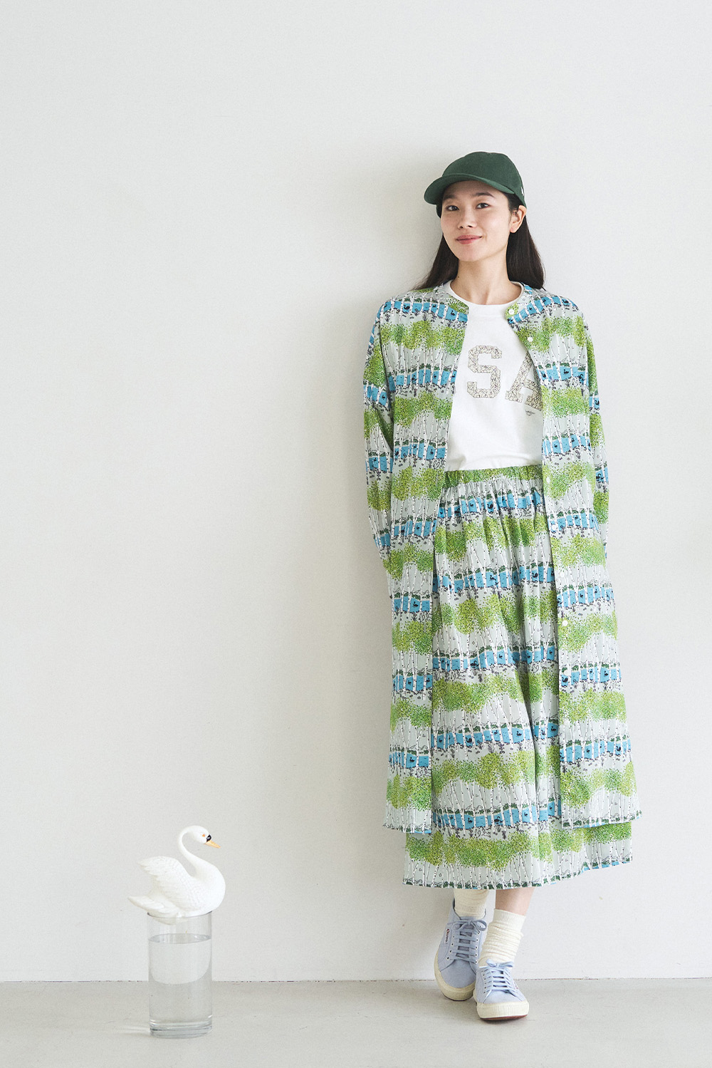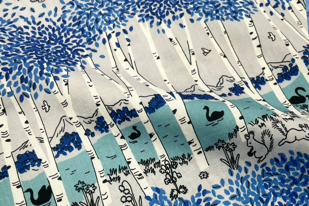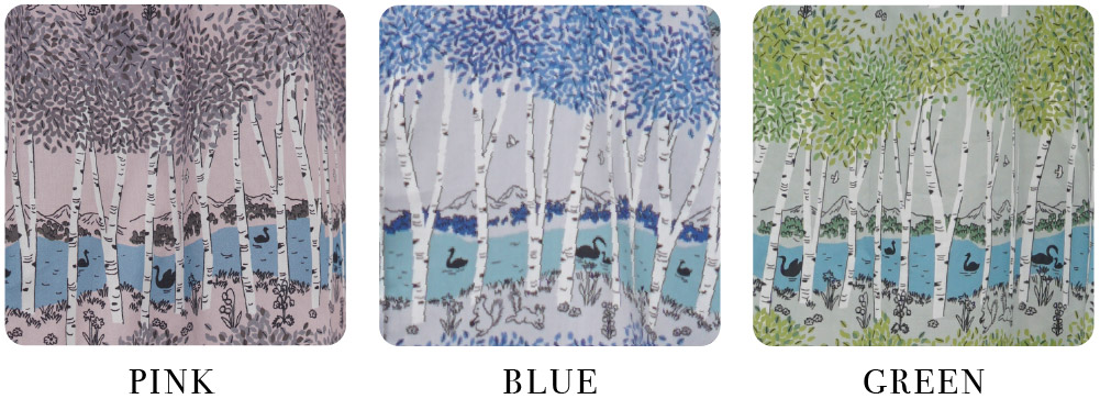 柄の時間 vol.16 2026.01.28 column [ 2026春夏コレクション ] shirakaba 白樺の森の向こうには、澄んだ湖が広がっている。春の風を感じる白鳥たちの優雅な昼下がり。マーブルシュッドならではの繊細な風景柄のテキスタイルです。 色展開は? PINK、BLUE、GREENの3色展開。 素材は? やわらかな綿100%素材。 こだわりは? 白樺の森の中の動物たちやお花が繊細に描かれています。 型は何種類? シャツ、プルオーバー、ワンピース2型、スカートの全5型。 「shirakaba」の商品ページはこちら